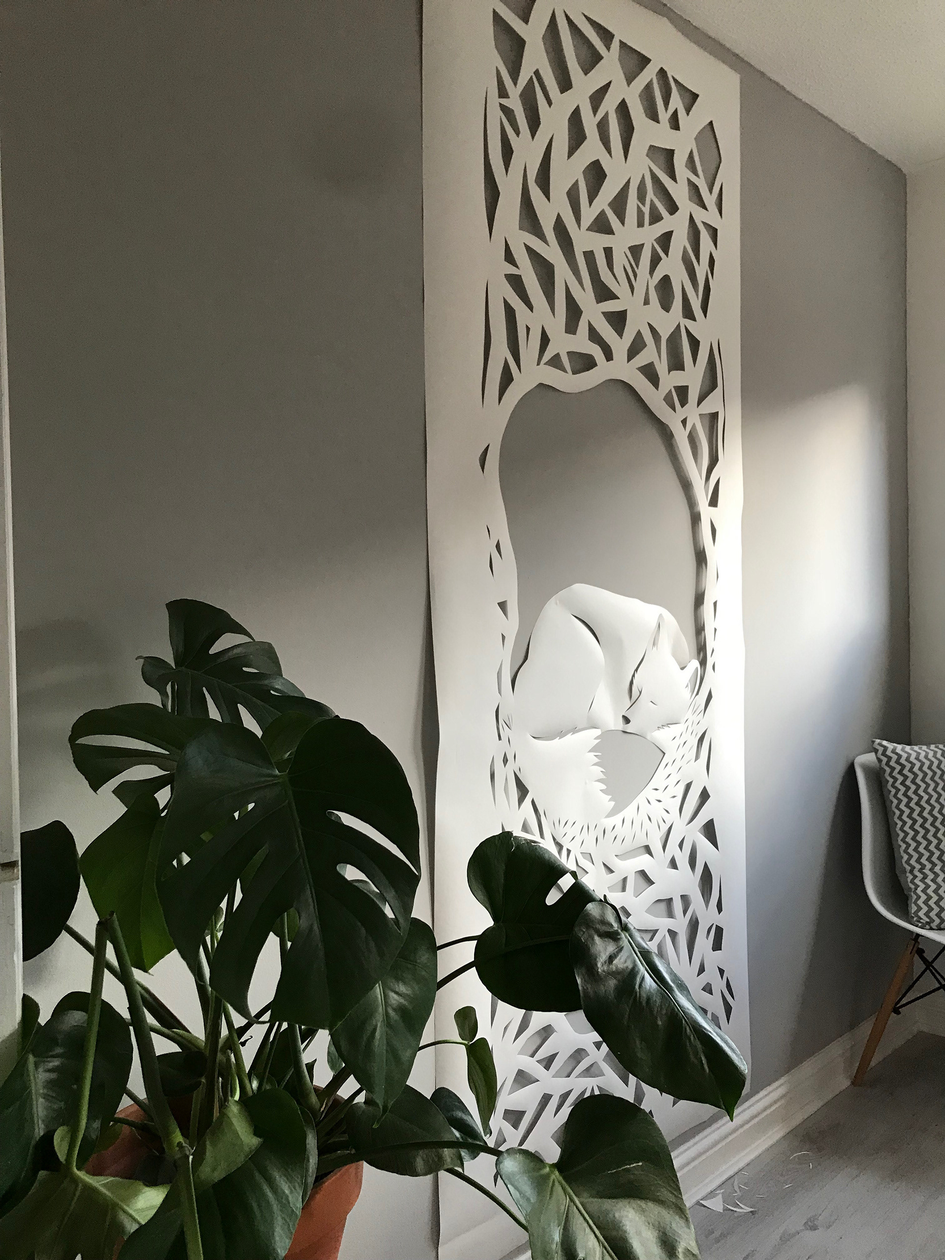 In 2018 I took part in Glasgow's Strathbungo Window Wanderland event, creating five 1m x 2m high paper cut graphics to sit inside the windows of organiser Sarah Reid's home. The theme was Scottish Wildlife and featured an 'above ground' and 'below ground' perspective.